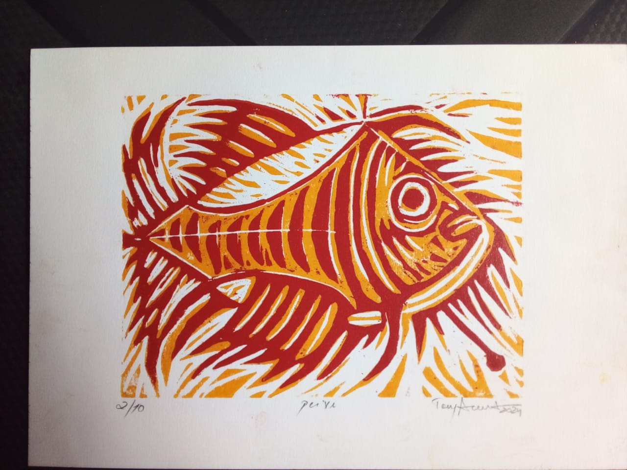 A exposição apresenta 15 obras produzidas entre 2015 e 2025, cuidadosamente selecionadas para que o público percorra, como quem segue um fio poético, a trajetória do artista, acompanhando o amadurecimento de sua técnica e a consolidação de seu estilo próprio. As peças abrangem diferentes linguagens gráficas, como xilogravura, gravura em metal (ponta seca), linoleogravura, matriz perdida colorida e outros experimentos gráficos, revelando uma pesquisa marcada pela fidelidade à tradição, mas também pela ousadia em expandir seus limites. O preto no branco, essência da xilogravura, emerge com intensidade, trazendo à superfície um gesto firme, direto e marcante. Mas é também no diálogo com a contemporaneidade que Tony abre espaço para o inesperado: as cores sobrepostas, matrizes perdidas coloridas e contrastes cromáticos irrompem como janelas de novas possibilidades visuais, instaurando texturas, ritmos e atmosferas poéticas que reinventam a gravura sem apagar sua origem.