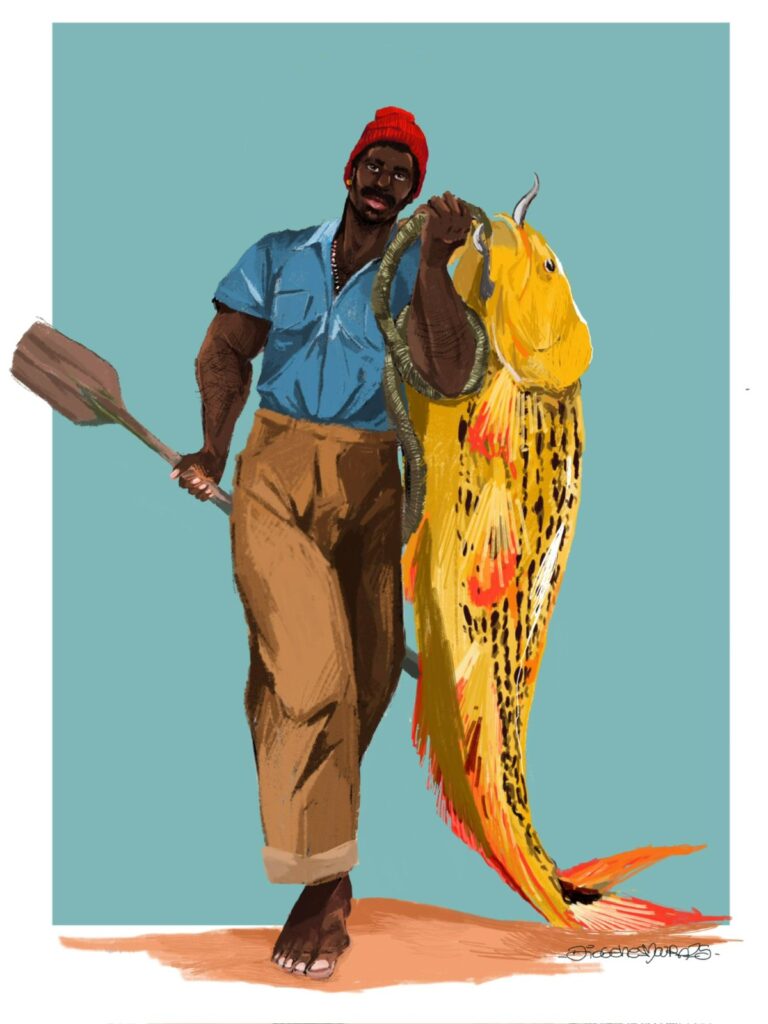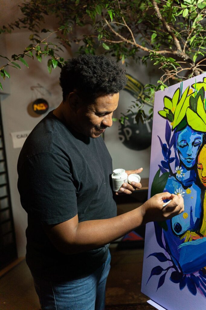 Com isso, o artista exalta a contribuição da cultura afro nessa região, questionando o futuro dessas construções de identidade, com linguagem expressiva de cores e formas.